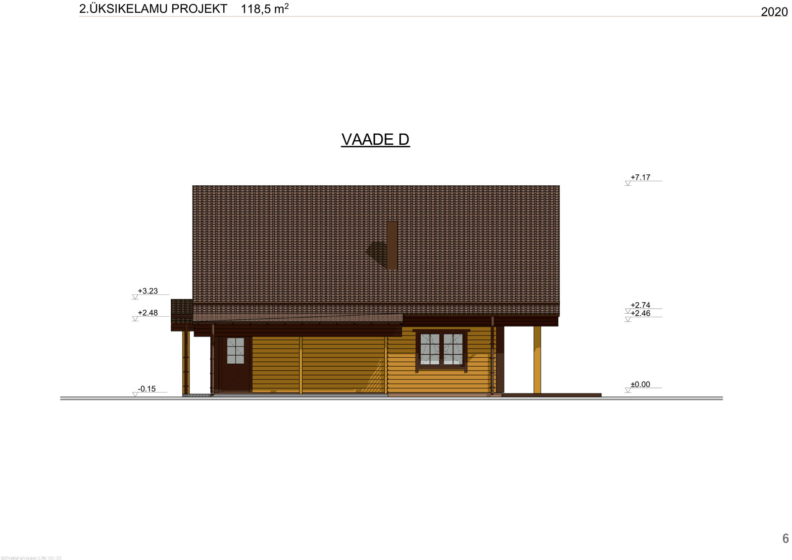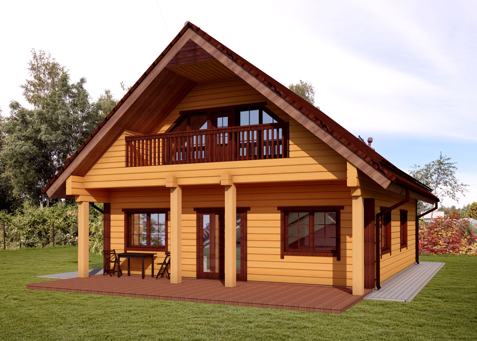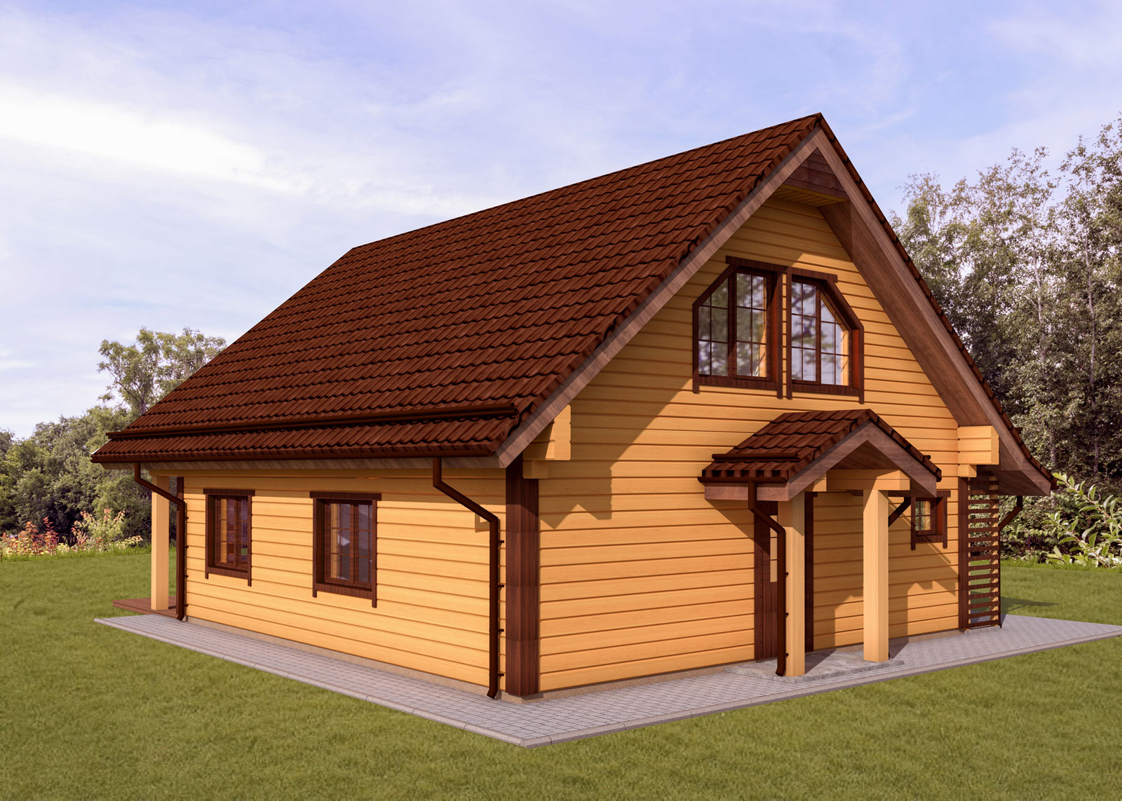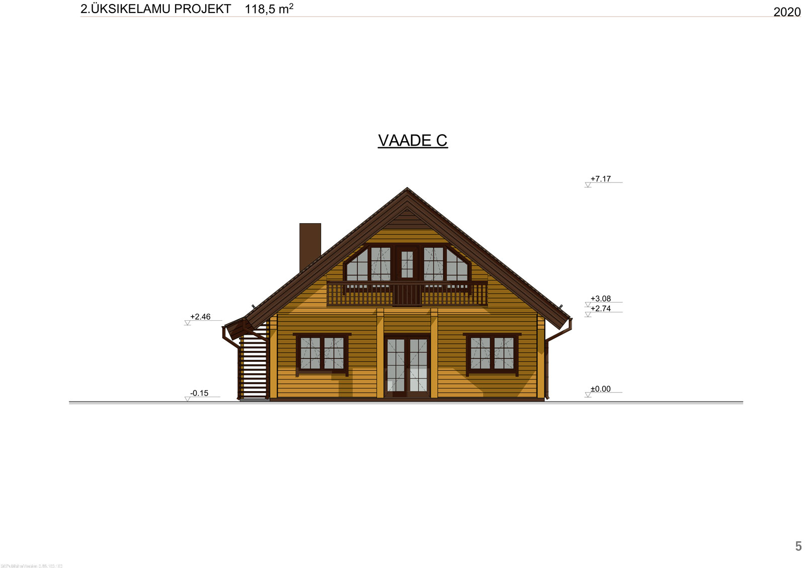 Kahekorruseline puitmaja, mille valmistamisel on rõhku pandud keskkonnasõbralikkusele ja funktsionaalsusele. Projekt sisaldab avarat terrassi ja rõdu, mis loovad mugavad tingimused maal elamiseks. Arhitektuurne lahendus ühendab traditsioonilised vormid ja kaasaegsed materjalid, muutes maja atraktiivseks ja praktiliseks aastaringseks kasutamiseks.