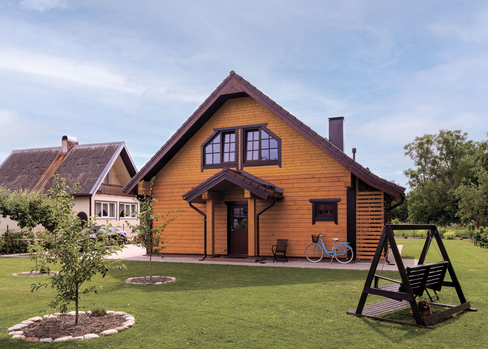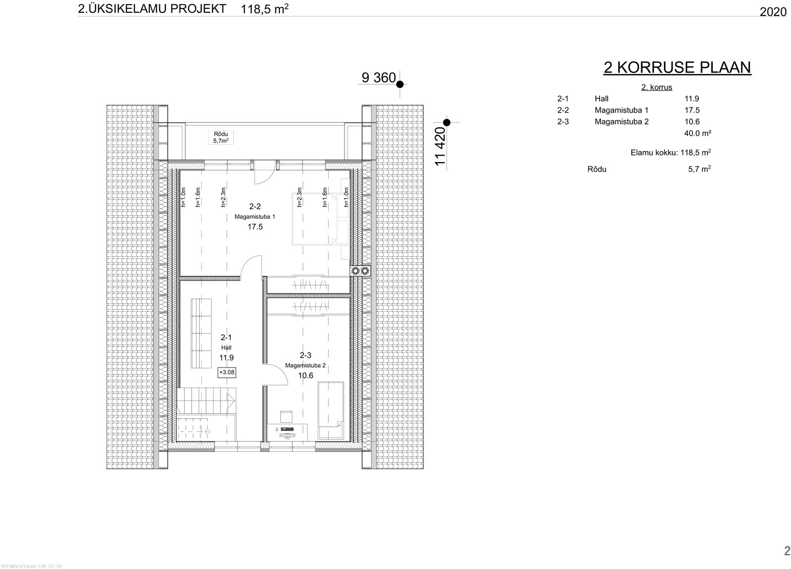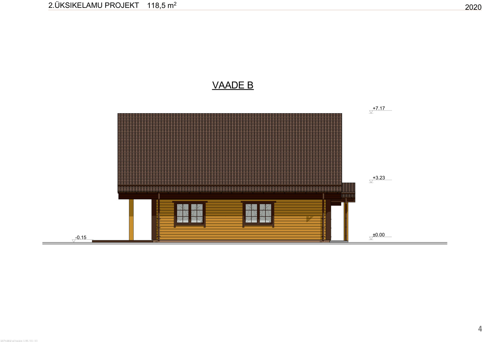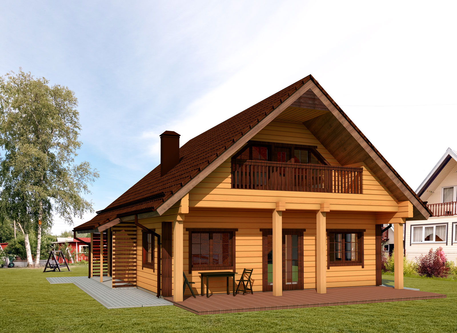 Kahekorruseline puitmaja, mille valmistamisel on rõhku pandud keskkonnasõbralikkusele ja funktsionaalsusele. Projekt sisaldab avarat terrassi ja rõdu, mis loovad mugavad tingimused maal elamiseks. Arhitektuurne lahendus ühendab traditsioonilised vormid ja kaasaegsed materjalid, muutes maja atraktiivseks ja praktiliseks aastaringseks kasutamiseks.